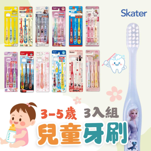 【現貨🇯🇵附發票】日本 Skater 寶寶幼兒牙刷 【3-5歲】 3入組 附牙刷蓋