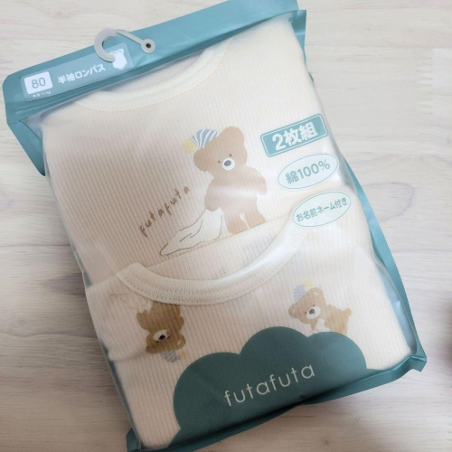 【80cm🍭】日本 futafuta 短袖包屁衣 兩件組 熊熊 新生兒 日本童裝 純棉
