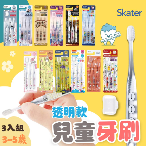 【現貨🇯🇵附發票】日本 Skater 寶寶幼兒柔軟牙刷 【3-5歲】 3入組(透明款) 附牙刷蓋