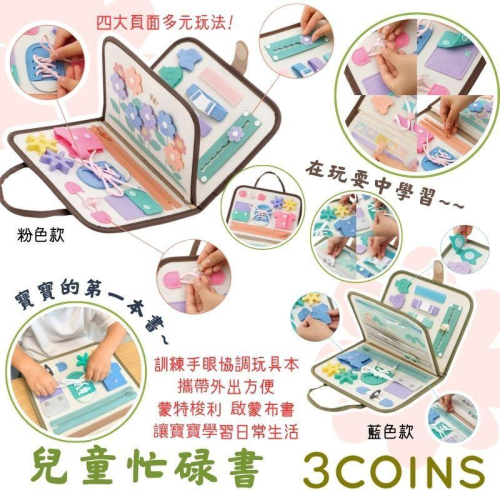 【快速出貨開發票】新款3coins 寶寶忙碌書 知育遊戲書 知育玩具 感官遊戲 小肌肉訓練 寶寶布書 手部練習 魔鬼氈