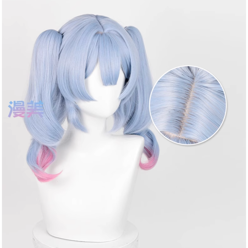 ♡樣式:中分仿真頭皮頂,鬢角收臉,本體短髮+分體虎口夾雙馬尾