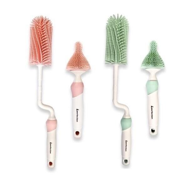 材質:刷毛-矽膠、握柄-PP塑膠 尺寸:33cm / 19cm 長 顏色:粉色 / 綠色 耐熱溫度:矽膠:-40°C~250°C