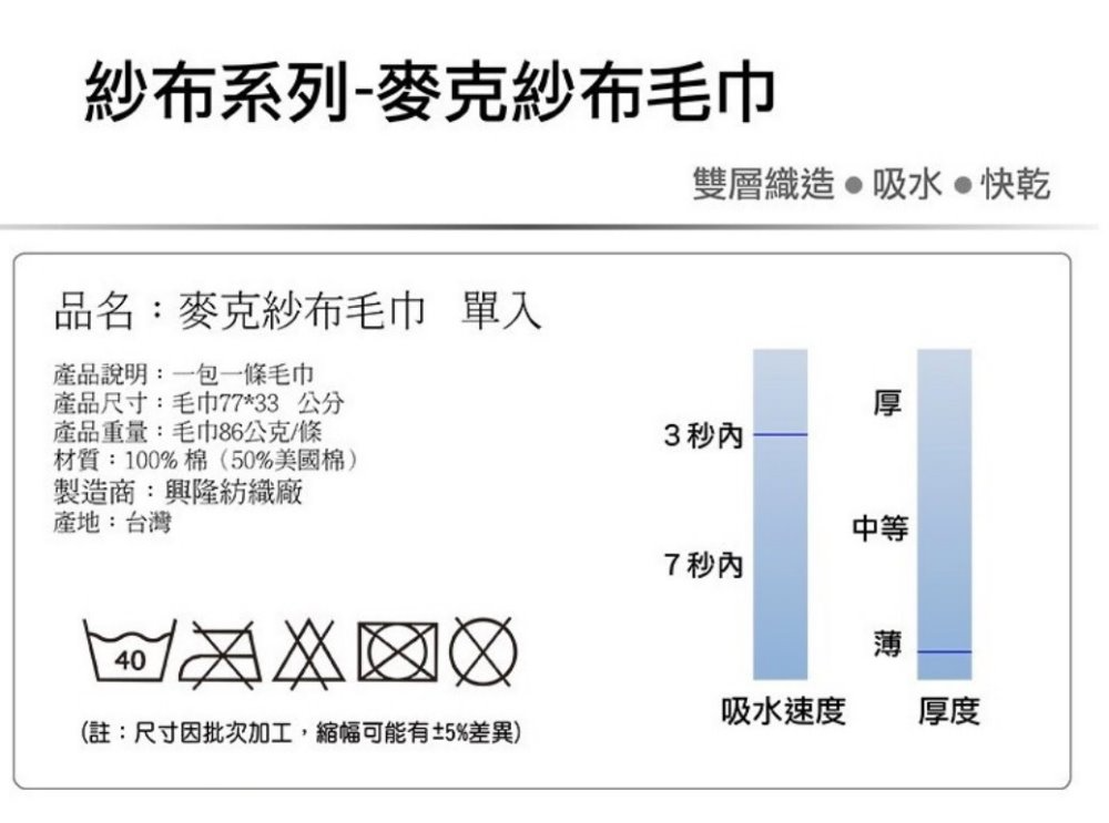 台灣興隆毛巾 麥克紗布毛巾 毛巾 紗布毛巾 紗布巾 快乾毛巾 洗臉巾 洗澡巾 純棉毛巾 台灣製毛巾 台灣現貨