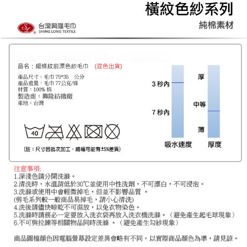 百分百純棉,台灣製造,輕薄快乾方便攜帶,是居家生活的好幫手。 混色包裝,帶給您不一樣的視覺效果。 顏色隨機出貨,不定時會有重複花色,依現貨而定