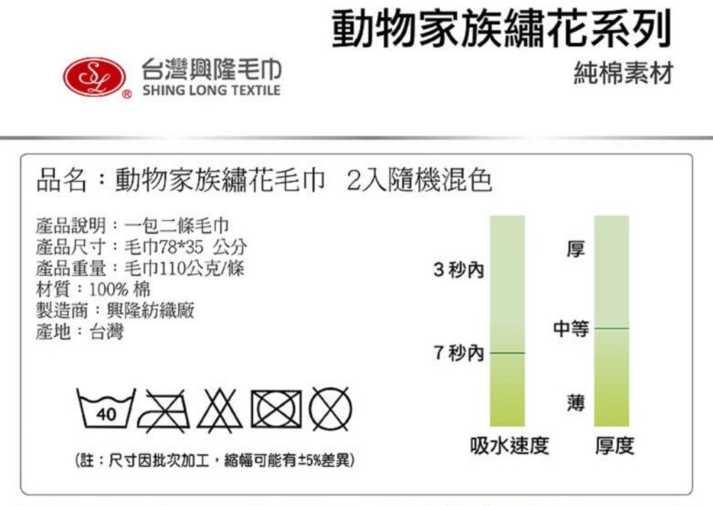 產品重量:毛巾110公克/條