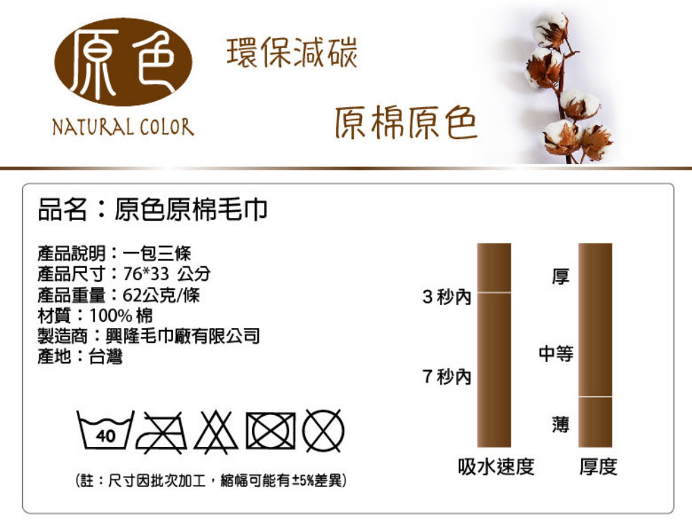 原色.原棉無染純棉毛巾 (6條毛巾組)【台灣興隆毛巾製】無染環保系列 輕薄易乾