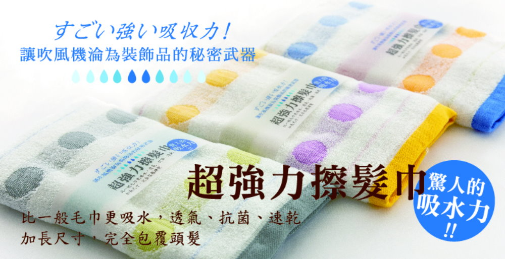 超強吸水速度的擦髮巾,比一般純棉毛巾更吸水、透氣、抗菌、快乾,加長尺寸,完全包覆頭髮,