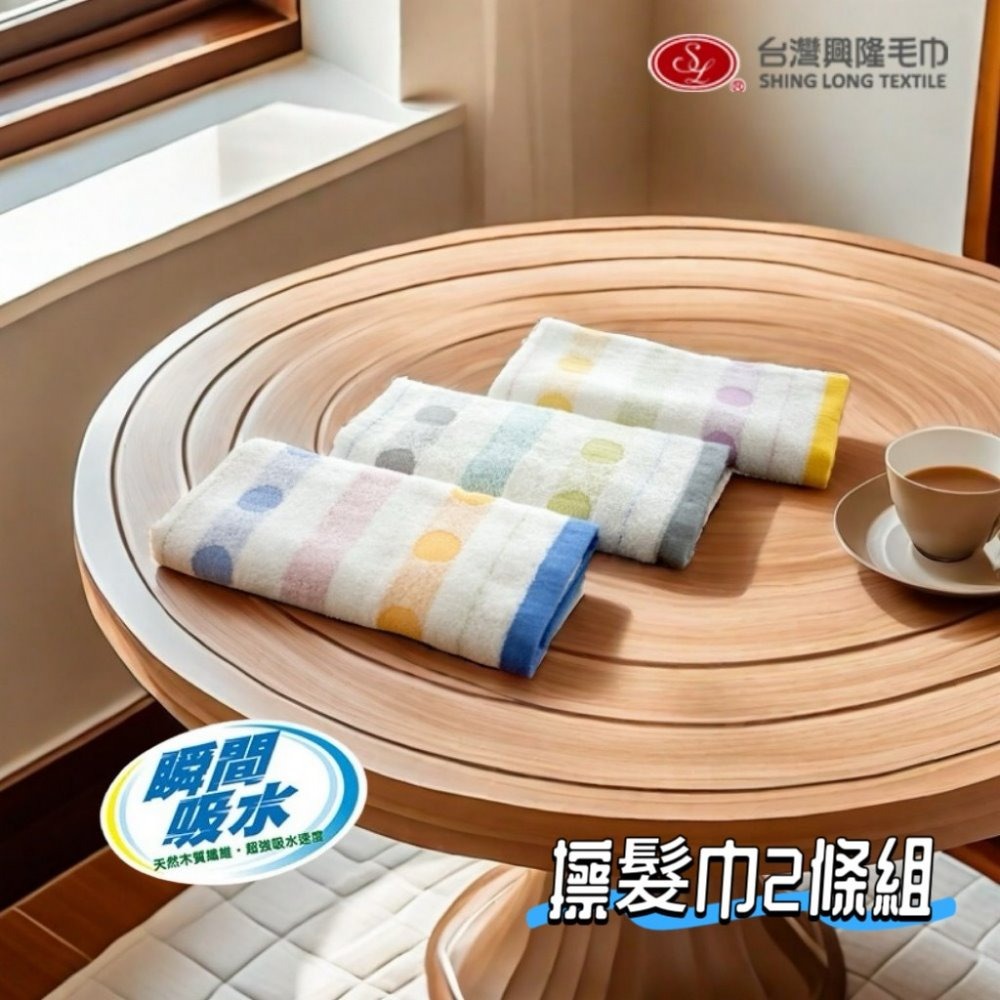 超強力擦髮巾-多彩圓點(2條毛巾組)【台灣興隆毛巾製】加長設計 瞬間吸水 易乾輕巧