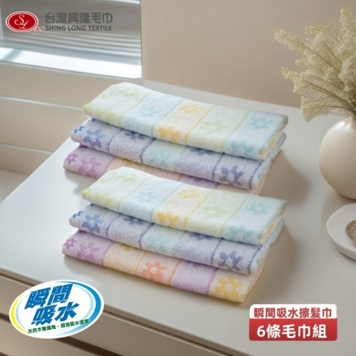 超強力擦髮巾-花語款(6條優惠駔) 【台灣興隆毛巾製】加長設計 瞬間吸水 輕巧易乾