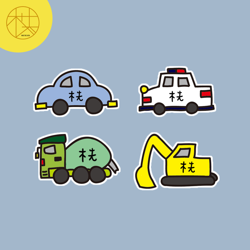 手繪白底姓名貼【防水、耐高溫】- 車車系列50入