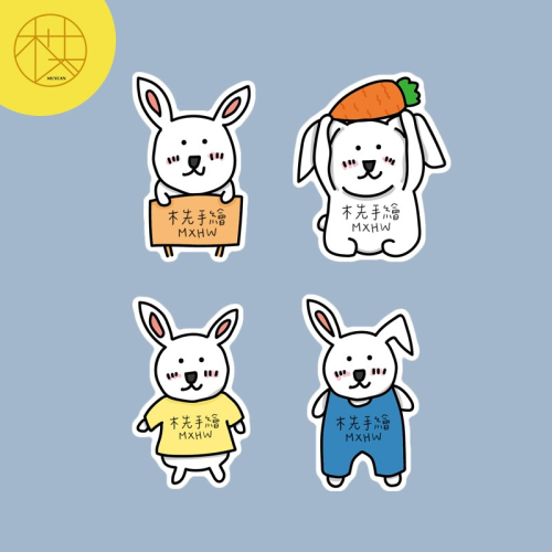 手繪白底姓名貼【防水、耐高溫】- 兔子50入