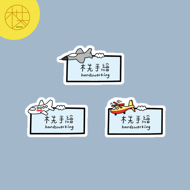 手繪白底姓名貼【防水、耐高溫】- 飛機50入