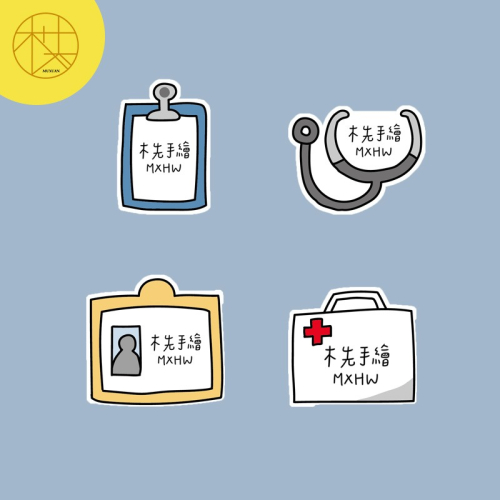 手繪白底姓名貼【防水、耐高溫】- 醫護50入