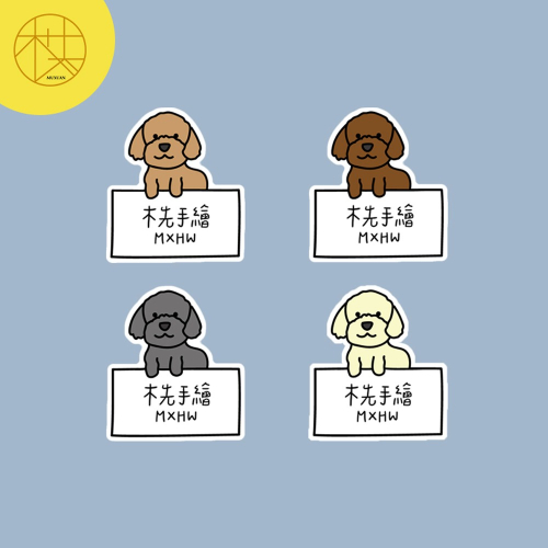手繪白底姓名貼【防水、耐高溫】- 貴賓狗 50入