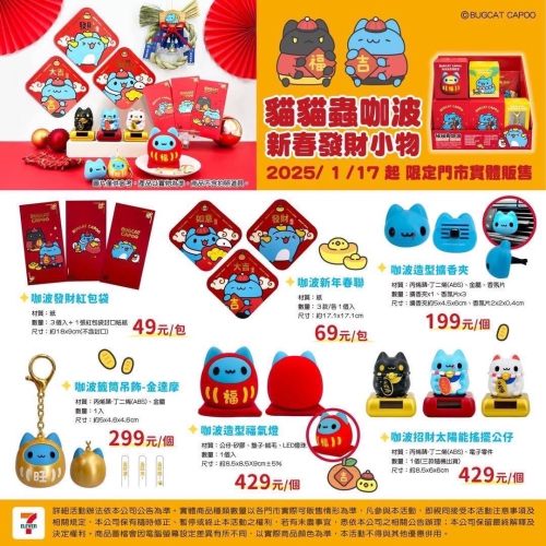 貓貓蟲咖波 新春發財小物 紅包袋 春聯 擴香夾 籤筒吊飾 金達摩 福氣燈 太陽能 搖擺公仔