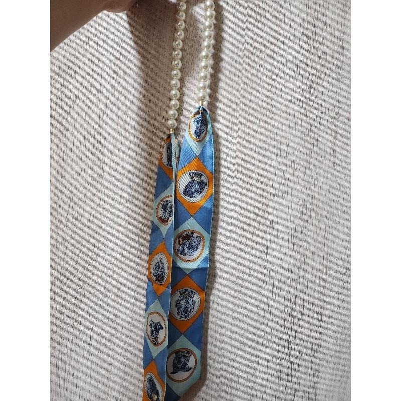 絲巾種類很多 挑選喜歡的歐膩會幫您製作成珍珠鍊帶