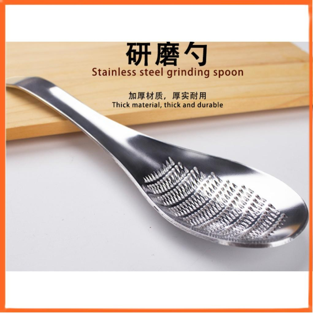 商品名稱:不鏽鋼磨泥湯匙 材質:不銹鋼 尺寸:長約17公分x寬4公分 產地:中國 數量:1入