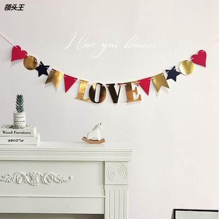 甜妞節慶♥台灣現貨♥【金色LOVE愛心彩旗】LOVE彩旗 派對彩旗 派對佈置 裝飾掛旗 情人節裝飾 求婚佈置 櫥窗佈置