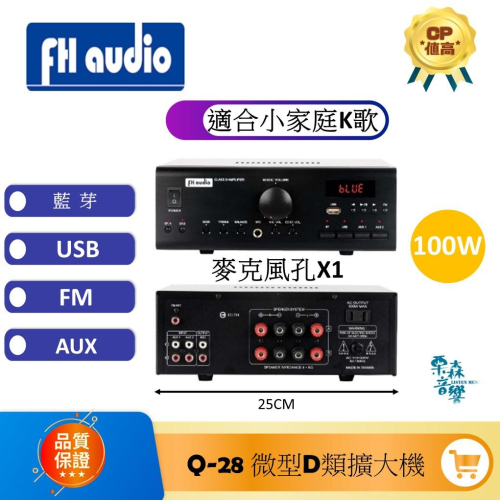 FH Audio 現貨 【免運】聊聊優惠價 Q-28 微型D類擴大機 ECHO 唱歌 聽音樂 適合小家庭K歌 FM 藍芽