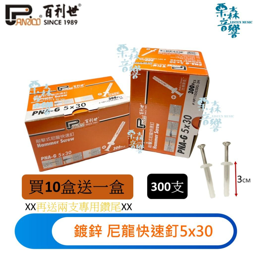 【Panrico 百利世】5x30鍍鋅螺絲敲擊式尼龍快速釘 尼龍快速敲擊釘 快速釘 敲擊尼龍安卡 另有白鐵