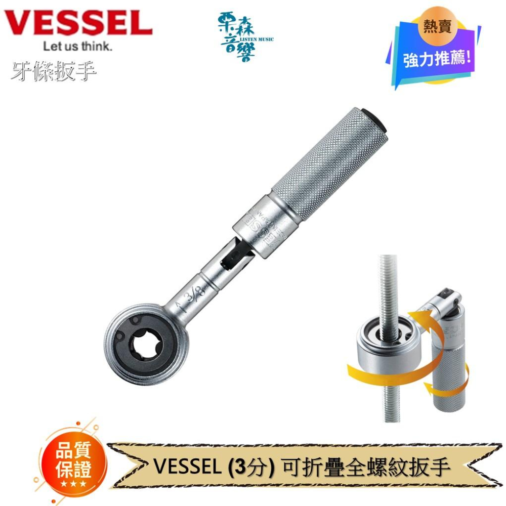 【VESSEL】 ZW-3 (3分) 可折疊全螺紋扳手 冷氣空調螺絲、螺桿鎖緊 螺紋桿板手 牙條板手