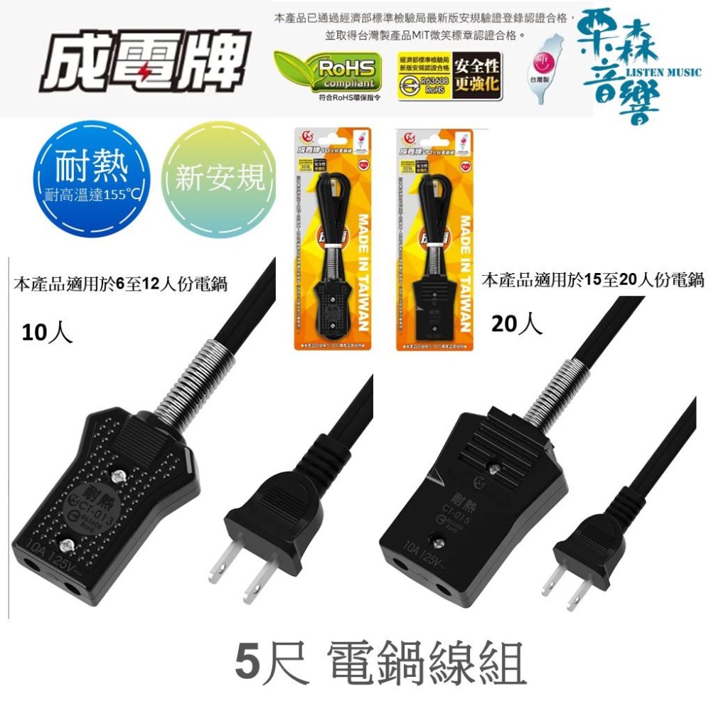 成電牌 10人份電鍋線組 20人份電鍋線 台灣製 5尺 10人份電鍋線 10人份 電鍋線 延長線 CT-013