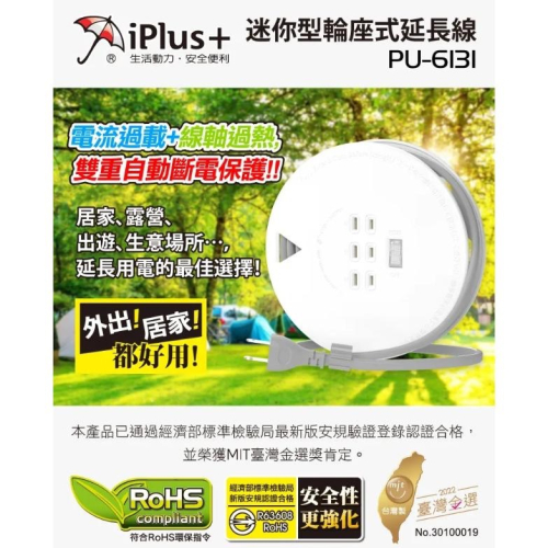 iPlus+ 保護傘 迷你型輪座式延長線 PU-6131 21尺