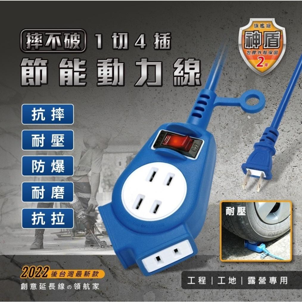【聖岡科技】摔不破1切4插節能動力線 動力延長線 露營 工地 工程 戶外延長線 車輾不壞 高摔無損 2P PB-914