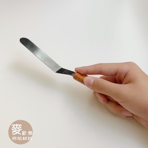 【麥歡樂】4吋曲柄小抹刀 不銹鋼木柄彎形曲柄刮平刀 蛋糕抹刀 慕斯小塔抹刀 蛋糕抹平刀【烘焙材料】