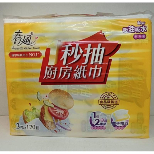[附發票]春風 一秒抽 抽取式廚房紙巾 120抽/包 一單最多5串唷!