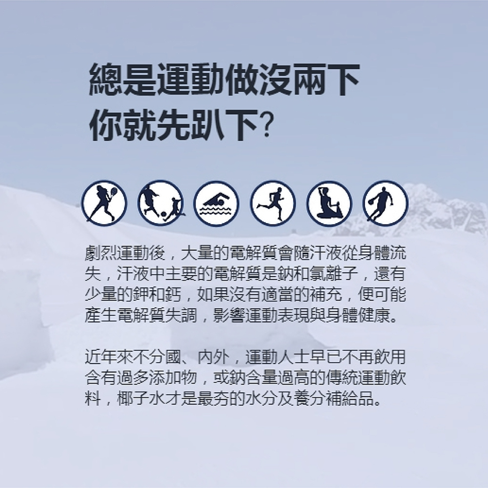 ⚠️開封前,液面上所形成的白色環狀物及底部沉澱,為椰子水中的天然油脂,與其他微量成分,如胺基酸自然聚集而成,請搖勻後安心飲用。
