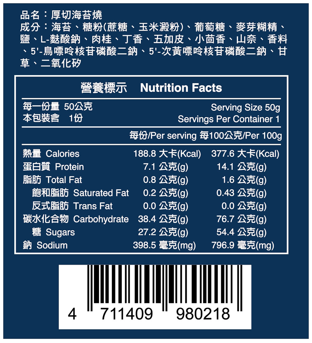 快來一口,讓厚切海苔燒的獨特風味帶給您美妙的味覺旅程吧!