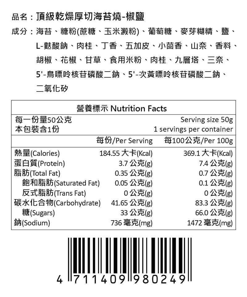 不管您是喜愛簡單原味還是敢挑戰口感的美食家,「頂級乾燥-厚切海苔燒」都能滿足您的味蕾,絕對是下午茶、零食時間的最佳伴侶!