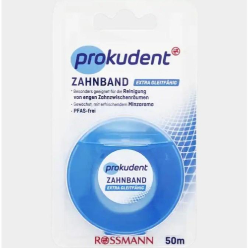 (正品)德國原裝進口prokudent牙線 不含PFAS 德國製造/原裝 原廠說明: 特別適用於齒縫狹窄空間的牙齒。 牙線採用扁平結構,使用舒適,可輕鬆滑入牙齒之間清潔。 清新淡雅的薄荷香氣。 50 米