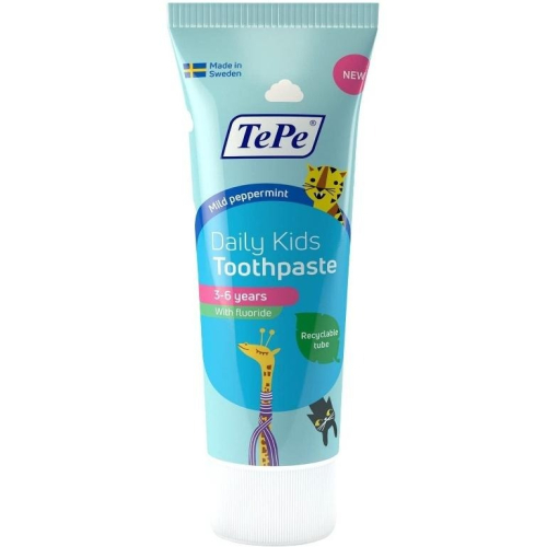 瑞典原裝進口TEPE潔淨護齒兒童牙膏#專為3歲以上兒童設計 瑞典製造 為 3 至 6 歲的兒童提供日常防護 溫和、低泡沫 不含微塑膠 不含十二烷基硫酸鈉 (SLS),這是一種會刺激敏感口腔組織的發泡劑 適合素食者。 75mL