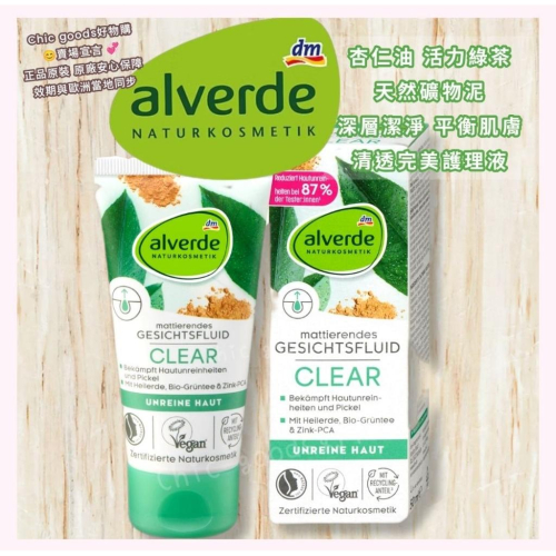 (正品)德國原裝alverde清透完美護理液 德國製造 / 原裝 原廠說明: 敏感肌膚保養 pH 值中性 不含石蠟/礦物油 不含對羥基苯甲酸酯 不含奈米微塑膠 NR化妝品 純素零殘忍 使用方式說明: 早晚使用或視需要時使用。 將臉部護理液塗抹在臉部,頸部和上胸部區域已清潔的皮膚上。 容量: 護理乳原廠瓶身標示50mL 溫和深層潔面乳原廠瓶身標示100mL 效期:最新效期 賣家說明: 此款洗面乳適合暗沉,粗糙,痘痘肌較嚴重的人。 敏感肌膚建議選它款洗面乳搭配這款完美護理液