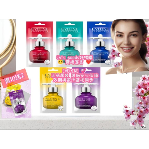 (正品)歐洲原裝EVELINE安瓶面膜 多款 歐洲製造/原裝 榮獲歐洲美容美體大獎 多款面膜 法規不能寫產品功能效果。如需要協助請來訊息詢問。