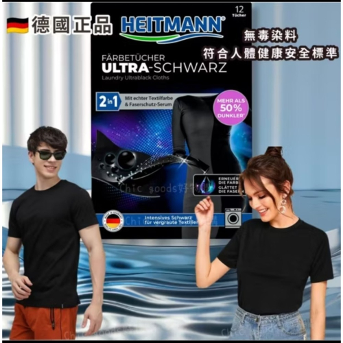 德國原廠製造的補染片會有一定的水準+安全性 科技產品一般都是講求實事求是。 對人體身體健康的安全性也都會符合標準才會生產。 所以可以放心使用。 德國原裝進口海特曼HEITMANN黑色衣物專用補染片 護色魔布 德國製造 二合一:色彩清新和色彩護理合二為一 含有纖維保護精華液可撫平纖維. 雙面塗層,雙亮黑色力量 簡單、快速、無殘留 適用於所有黑色紡織品 原廠說明:杜絕灰白、拉絲的黑色衣服。 使用HEITMANN二合一超黑染料布,您可以在洗滌過程中直接使黑色衣物煥然一新,並使纖維光滑。 超黑效果由染料布的雙面塗層提供。這些布料含有真正的高品質黑色紡織染料。 在洗滌過程中與纖維結合。這將使您的衣服保持黑色的光采。灰化也經常使用,然後再次變黑。此外,布料中所含的纖維保護精華液可使纖維光滑。衣服看起來非常整潔,保持良好的觸感。 可用於所有黑色紡織品和所有洗滌溫度。您可以像往常一樣使用洗滌劑和護理產品。 ❤ 購物說明 ❤ 請買家購買前先詳閱以下須知,下單視同已了解。 因歐美產品仿冒品太多,為確保貨源純正.我們堅持只向歐洲當地原廠廠商.授權經銷商.歐洲藥局採購. 不透過其他地區. 如有任何產品想詢問,可幫您代購回台灣。 如預購+代買商品,向歐美廠商下訂單,一般作業時間包含歐美廠商備貨時間+報關行報關+航班排班.約2~3周到貨.