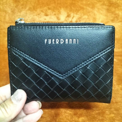 編織雙面扣式軟皮短夾零錢口在外面千鈔好放