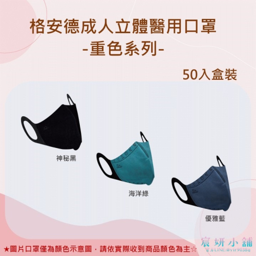 MIT格安德成人3D立體三次元醫用口罩-重色系列50入盒裝