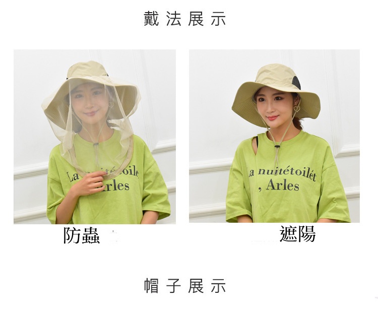 此款是帽子及網紗是二件分離式,可以單戴帽子,變成防曬帽,