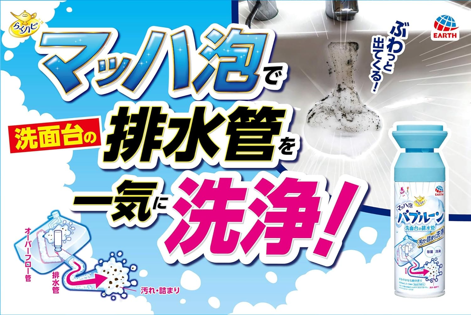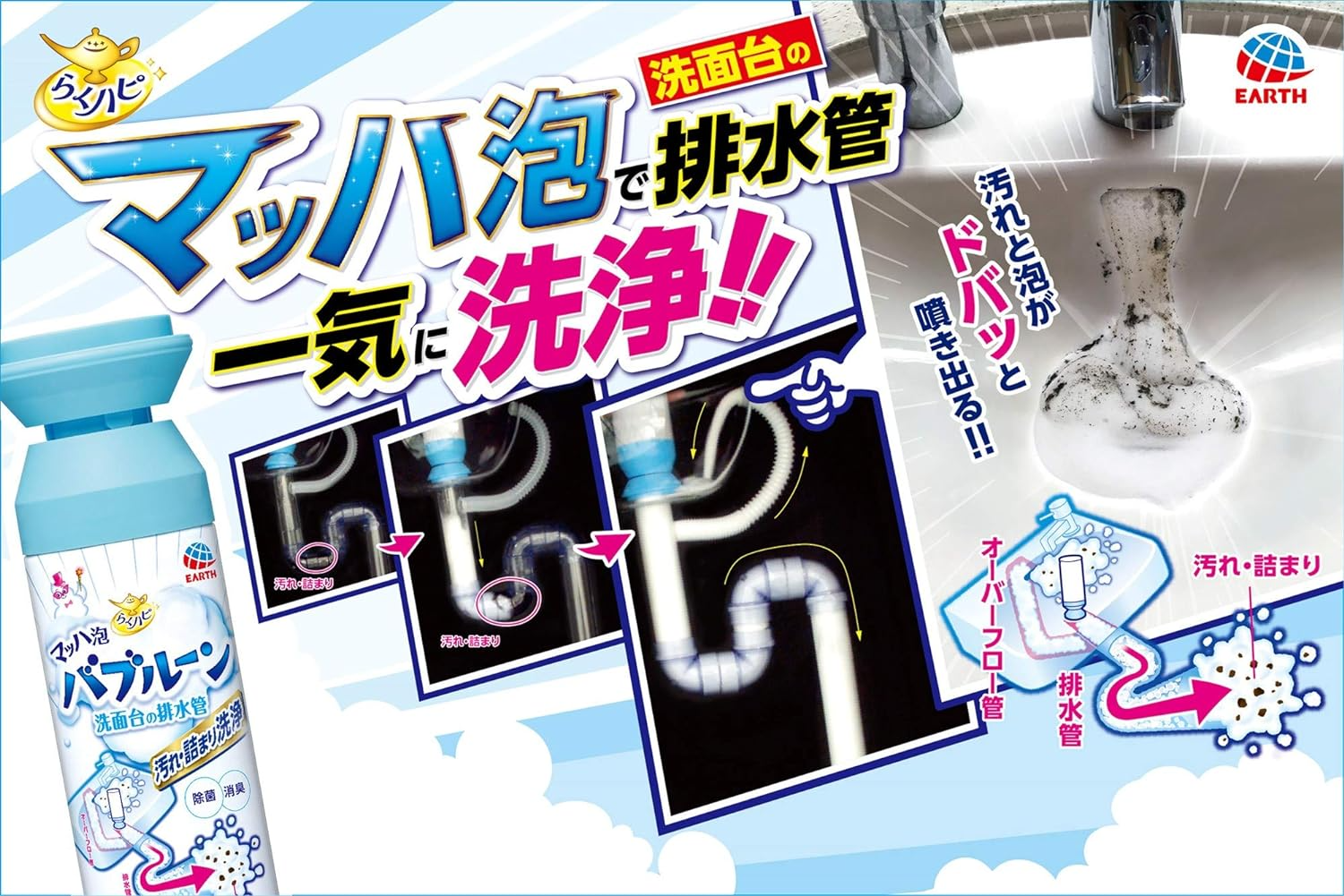 日本製 EARTH 地球製藥 水管除菌消臭泡泡潔淨噴劑 200ml