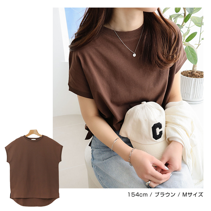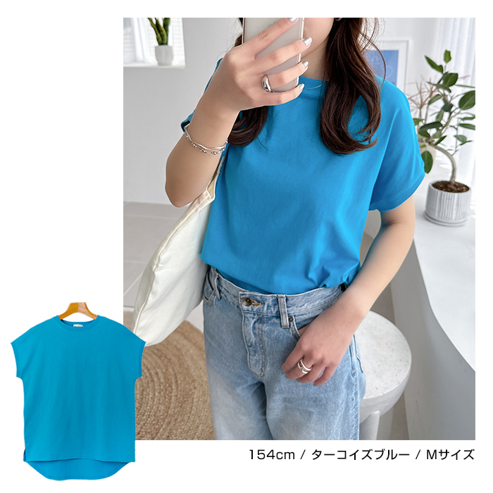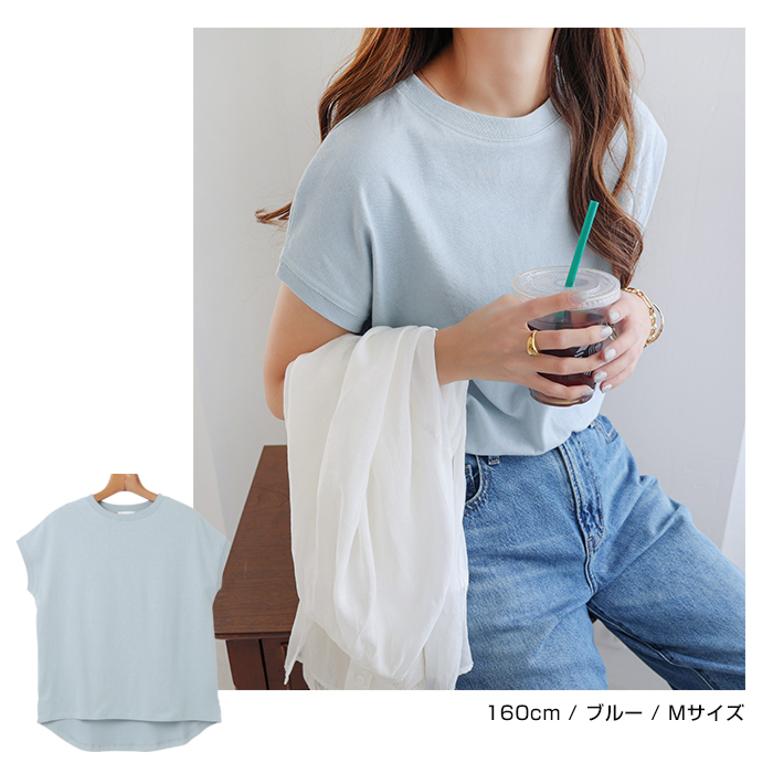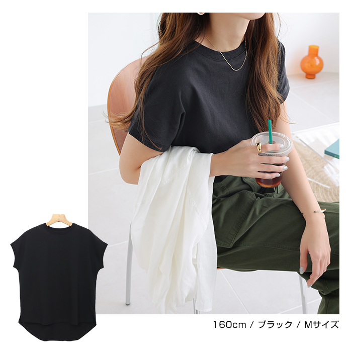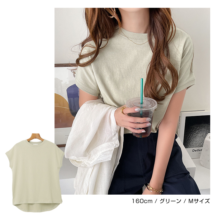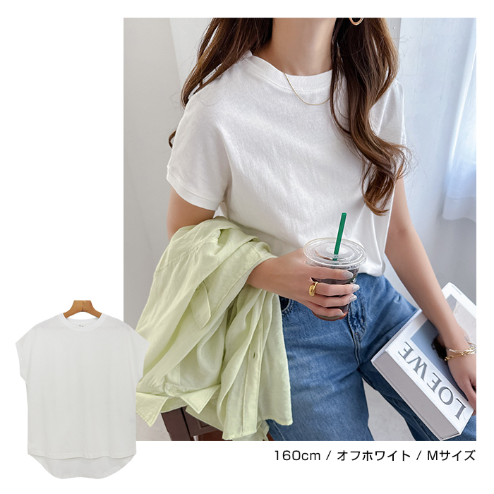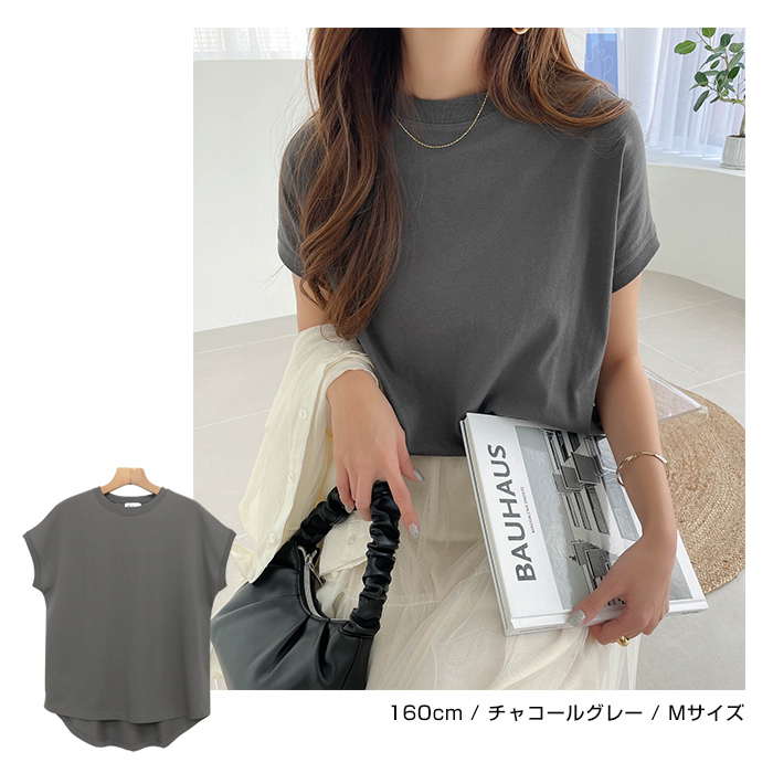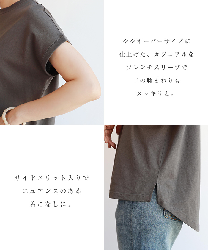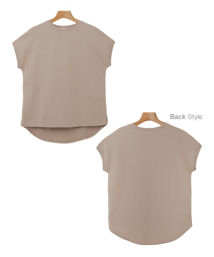 領口設計略為窄緊的極簡圓領,搭配略為寬鬆的尺寸,帶有休閒風的法式袖,展現隨性而時尚的感覺。