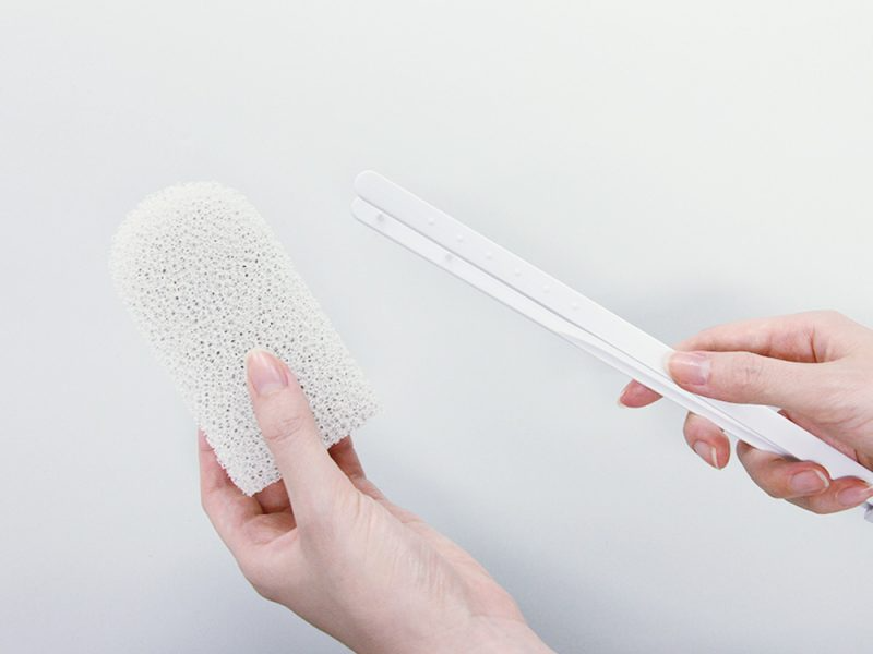 - 取下海綿:將卡扣滑向手柄,展開手柄,然後取下海綿。