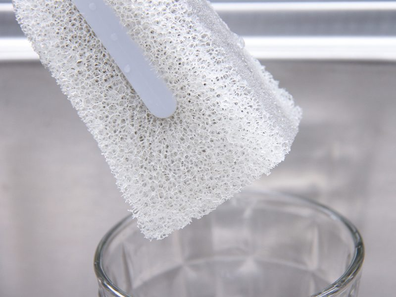 ●方形海綿可觸及瓶子角落,與細長瓶子相容。