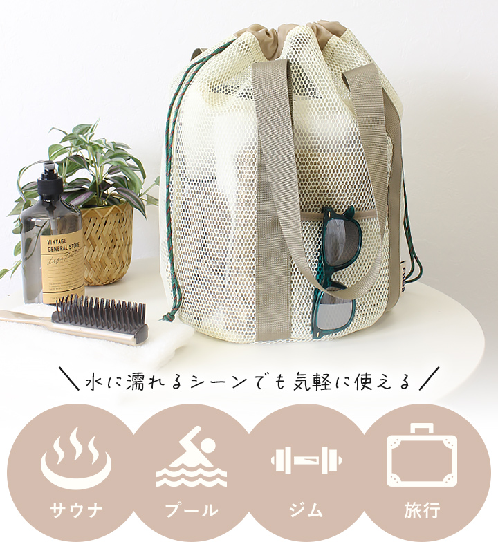 👜採用網布製成,透氣性佳,可用於海灘、泳池、健身房、旅行等場合。