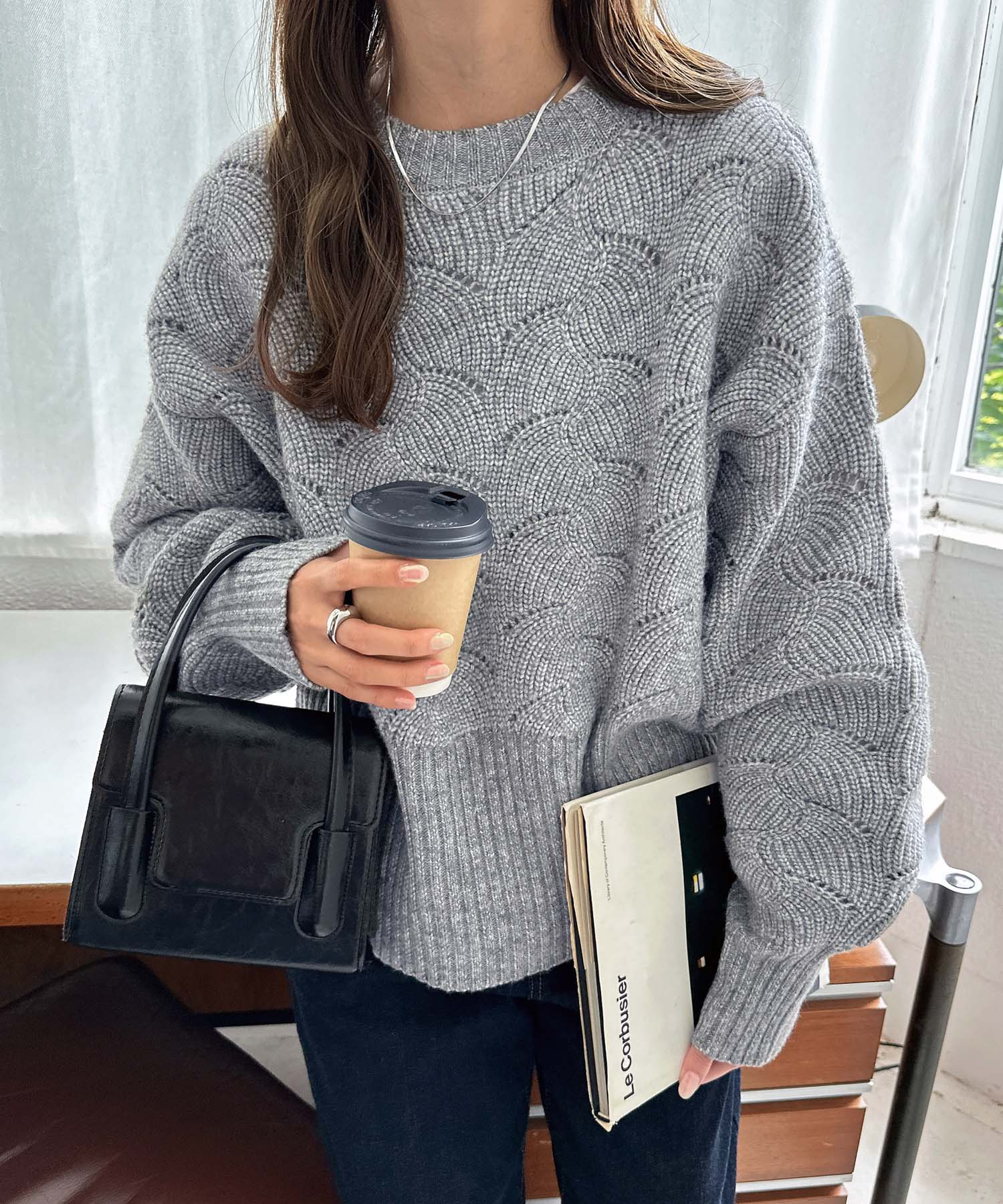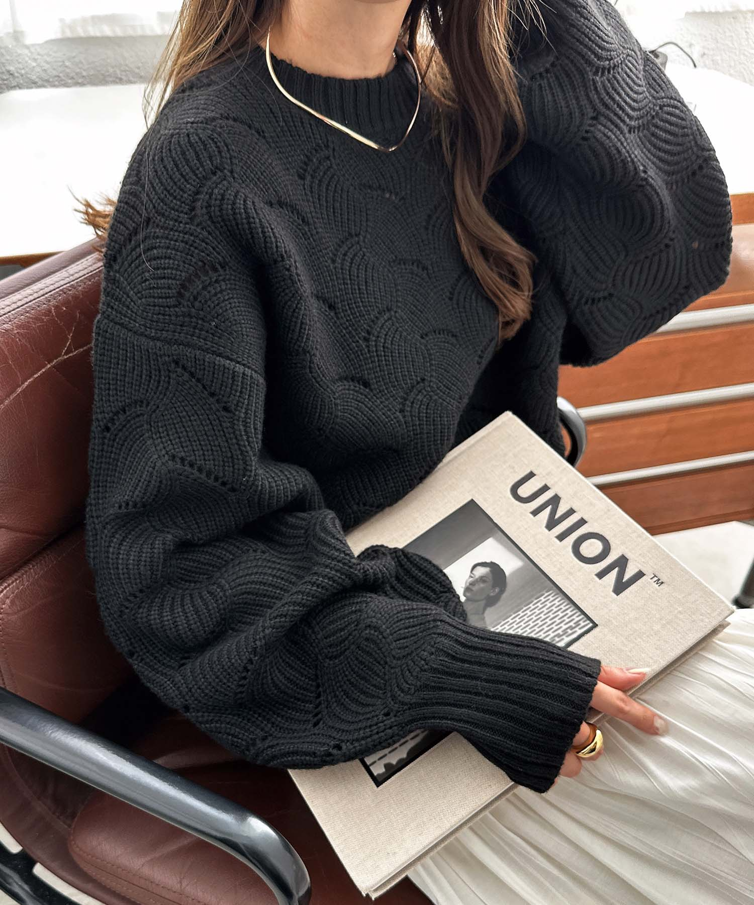 【預購】日本 Alma Design 鏤空針織長袖上衣 秋冬