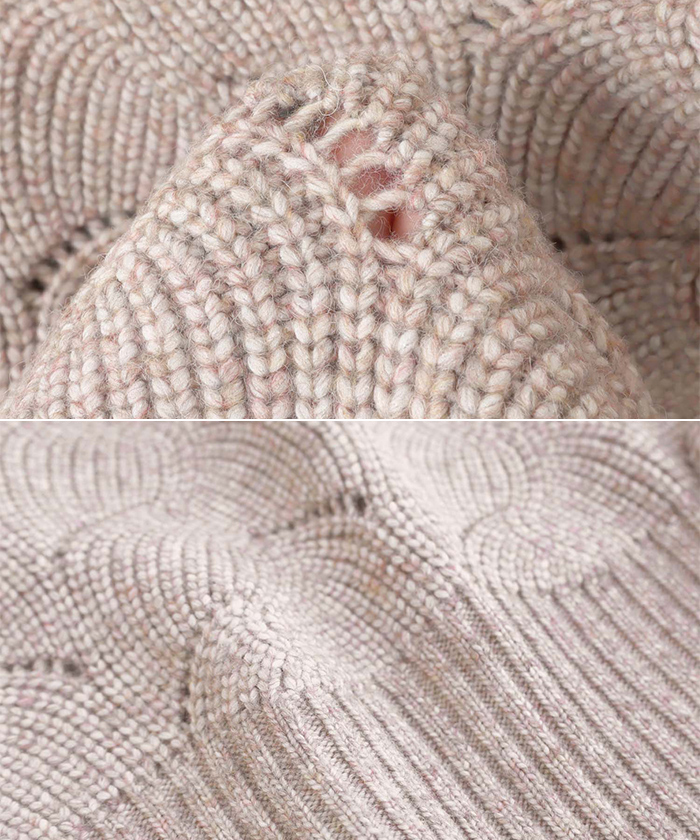 由柔軟蓬鬆的材質製成,具有獨特的鏤空編織紋樣。
