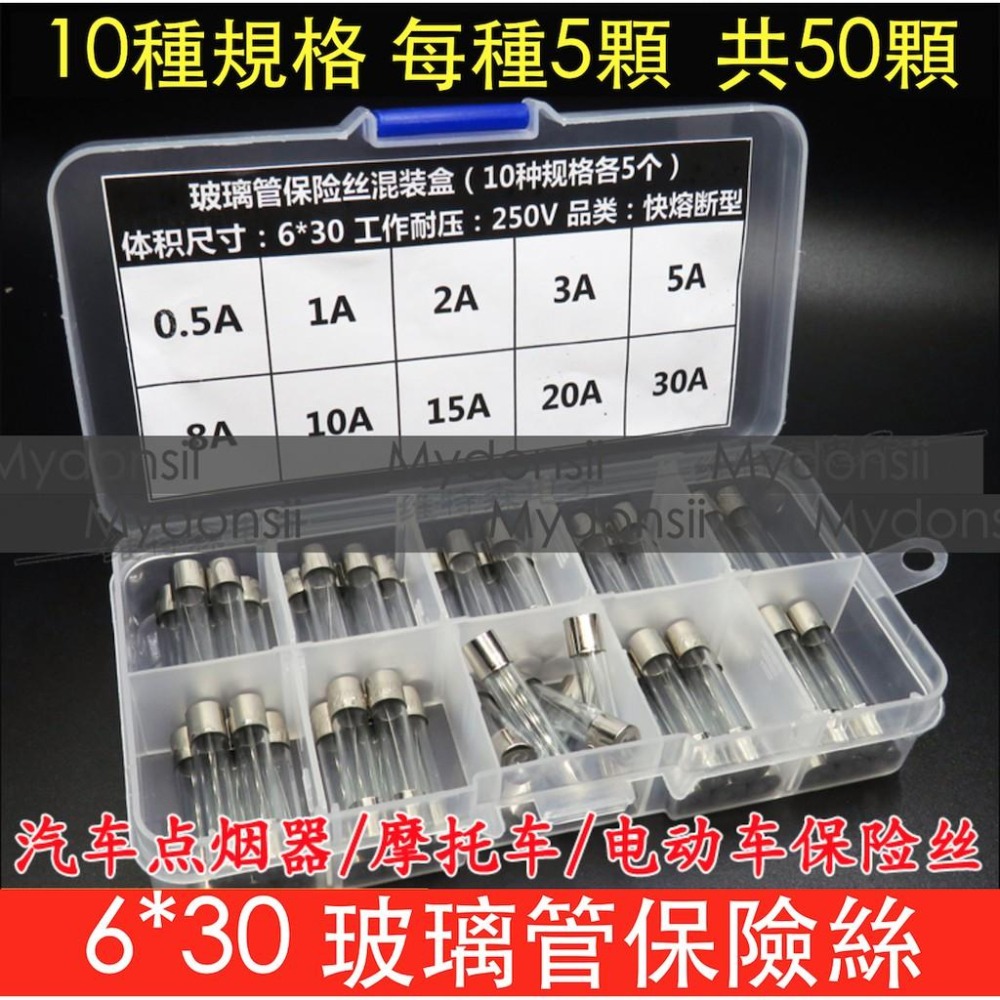 6*30mm規格 ➔ 0.5A、1A、2A、3A、5A、8A、10A、15A、20A、30A各5顆,共50顆。