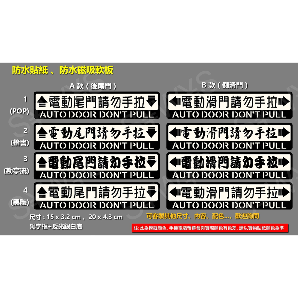 !!!!! 注意!! 吸在車身鈑金上時,建議每天拿下來 ! ! 因為空汙灰塵、下雨酸雨、日曬高溫,都可能會造成消磁或磁軟板融化的風險,本司不負車漆損毀或烤漆變色之責任。